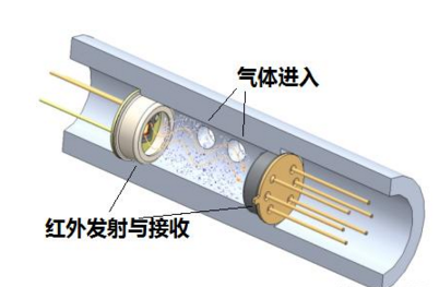 这种传感器利用气体对特定频率的红外光谱的吸收作用制成。红外光从发射端射向接收端,当有气体时,对红外光产生吸收,接收到的红外光就会减少,从而检测出气体含量。目前较先进的红外式采用双波长、双接收器,使检测更准确、可靠。
